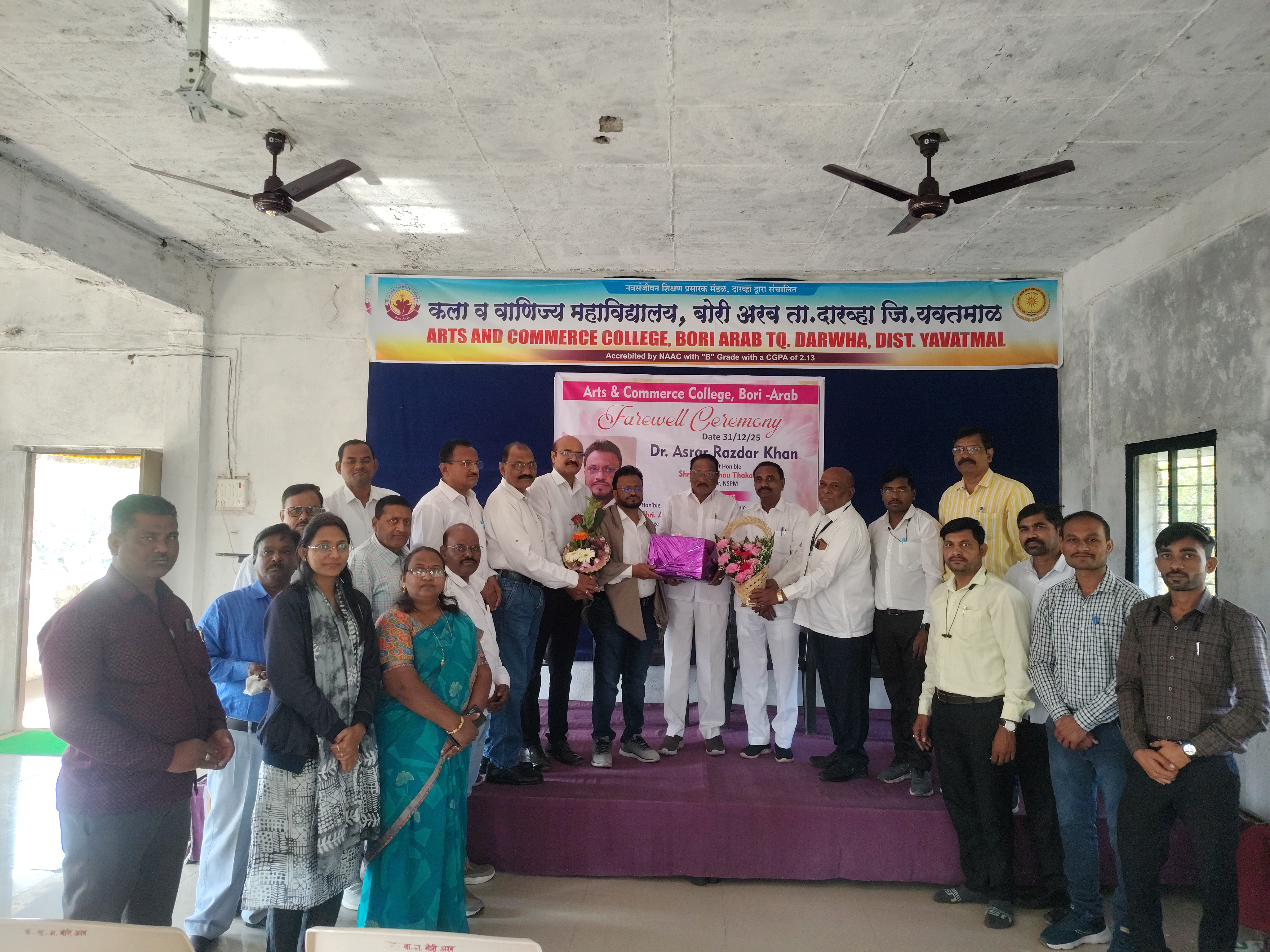 A Farewell Ceremony was organized in the college on 2nd May 2023 in association with IQAC and Department of Cultural.. On this occasion Dr. A.R.Khan was present as the chief guest and the principal of Dr. R.H.Butle was present in the chair.